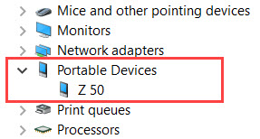 Veuillez noter qu’en fonction de l’appareil photo et de la version du système d’exploitation Windows utilisés, l’appareil photo peut figurer sous une autre catégorie.