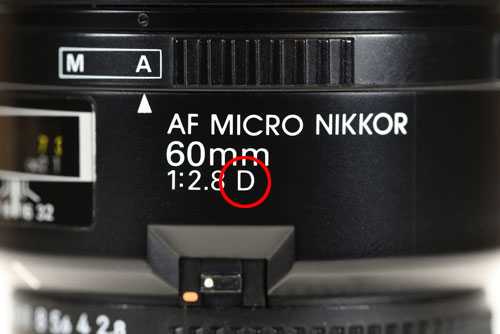 Gli obiettivi di tipo D contenevano un microchip di codifica in grado di trasmettere le informazioni sulla distanza di messa a fuoco al corpo macchina della fotocamera. Queste informazioni vengono utilizzate per aumentare la precisione dei sistemi di misurazione esposimetrica e flash delle fotocamere. Le fotocamere dotate dei sistemi di misurazione Matrix 3D richiedono obiettivi di tipo D per sfruttare in maniera ottimale questa tecnologia. Tutti gli obiettivi autofocus Nikon attuali sono in grado di trasmettere le informazioni sulla distanza. Gli obiettivi D sono riconoscibili dall'indicazione D presente sull'obiettivo, illustrata nella figura in alto.