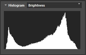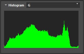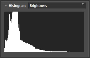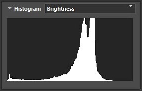 El histograma de brillo, también conocido como histograma de luminosidad, es una superposición de los tres canales de colores primarios (rojo, verde y azul) y se muestra en blanco y negro. Un análisis de los histogramas RGB separados ofrecerá información adicional sobre la exposición, ya que el recorte puede producirse en un canal aunque no aparezca en el histograma en blanco y negro.